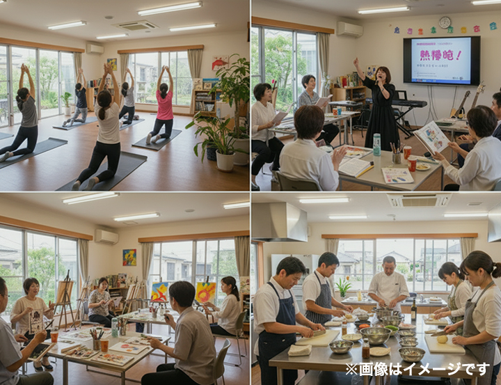 初めての方でも安心してご利用いただけるよう、わかりやすい料金体系となっております。個人利用、団体利用ともにリーズナブルな価格設定で、定期的な運動習慣や趣味の活動をサポートします。(トレーニングルームはご予約不要です)
